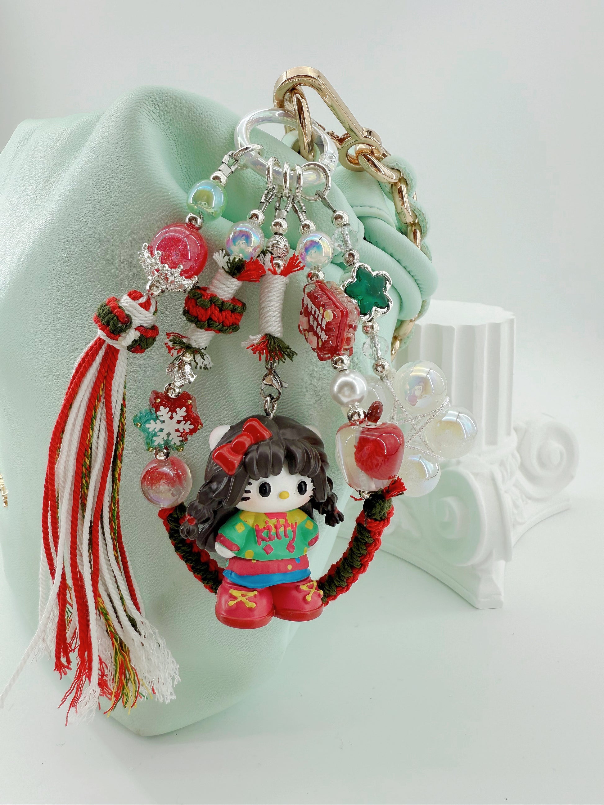 Hello Kitty Mini Figure Hand-knitted Phonecharm Bag Charm Pearl Tassel Charm